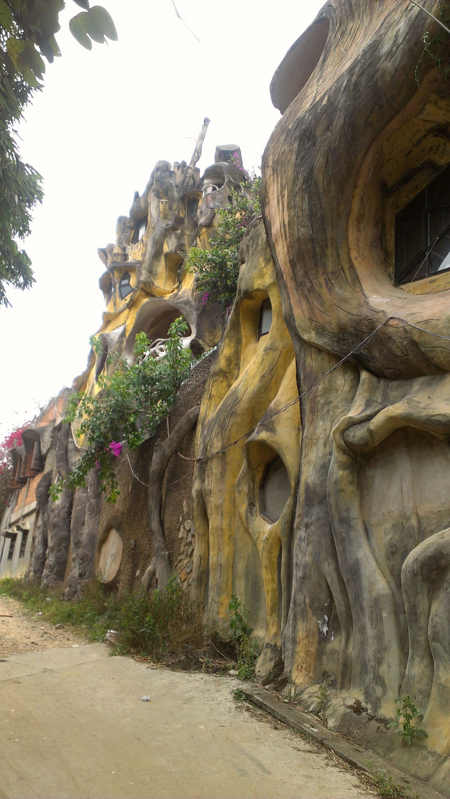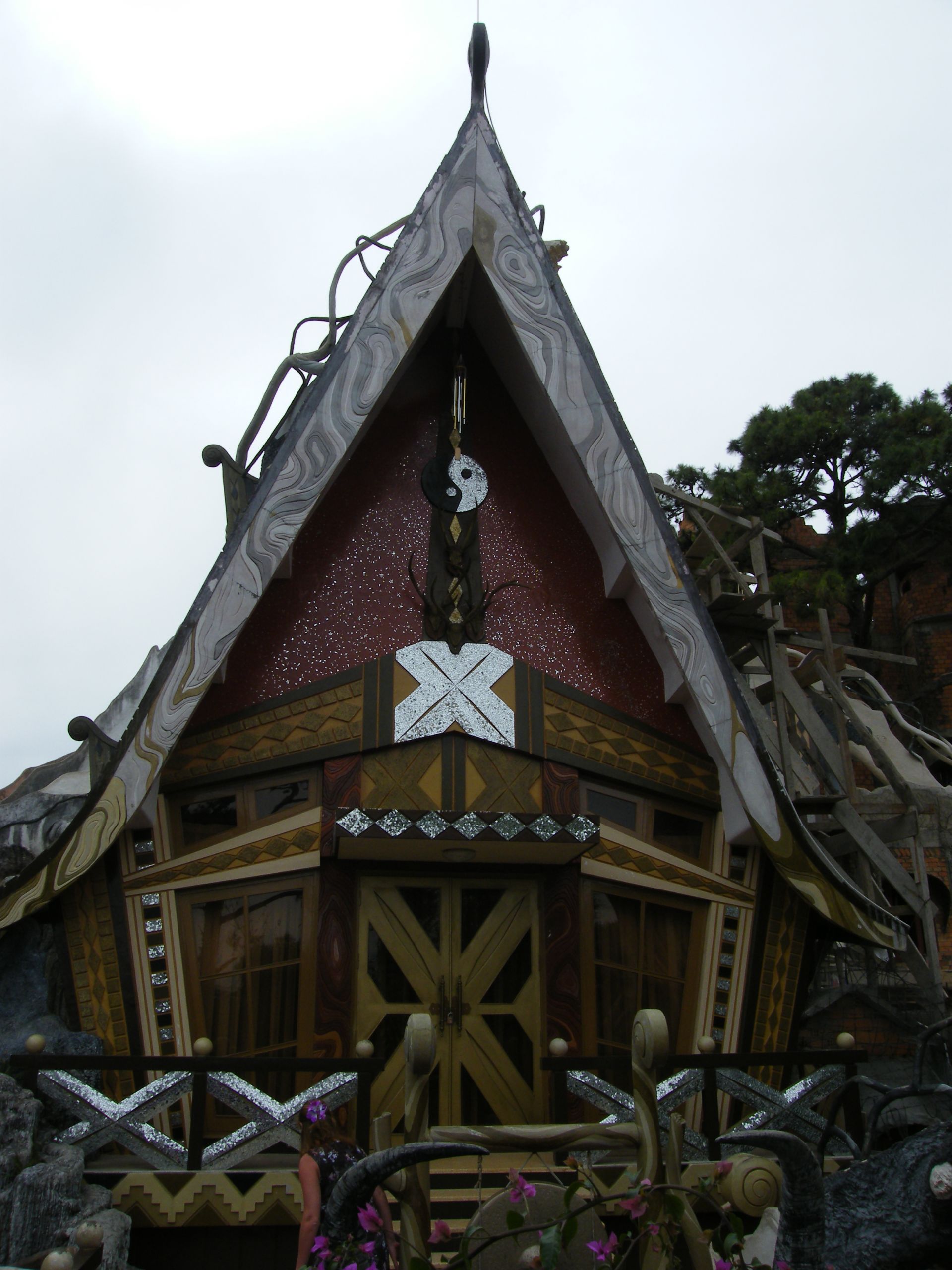 Создателем дома стала дочь второго советника дядюшки Хошимина, госпожа Данг Вьет Нга (известная больше как Ханг Нга), которая когда-то училась в России, а сейчас иногда лично встречает гостей в этот «сумасшедший дом». Она спроектировала это здание в форме дерева с кривыми окнами, туннелями с лестницами. Внешняя и наружная стороны гостевого дома построены с практически отсутствующими прямыми углами. Внутри находится множество тематических номеров: комната тигра, комната орла, комната муравья, комната кенгуру и так далее, с декорациями и мебелью ручной работы, соответствующей теме. Строительство и реконструкция продолжается до сих пор, и конца и края этой работе не видно.