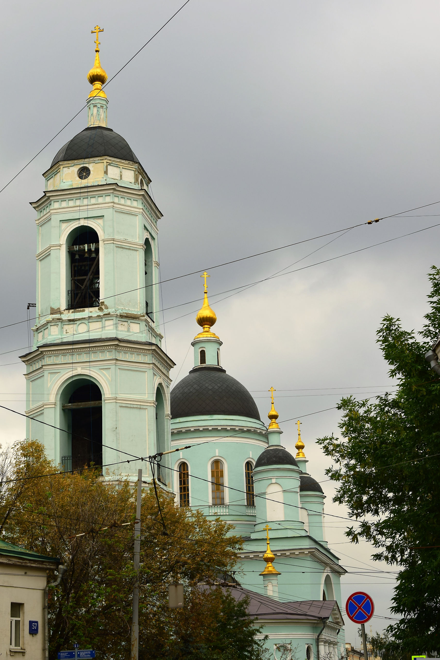 А слева стоит Сергиевская церковь. Церковь преподобного Сергия Радонежского в Рогожской слободе в Заяузье, «что в Гонной», находится на Николоямской улице, названной так по находившейся здесь и разрушенной в советское время церкви св. Николая Чудотворца в Ямах. Нынешнее здание построено в 1818 году на средства статского советника Г. Смольянского, который отдал на нее почти все свое состояние. Колокольня появилась в 1864 году. Главный престол храма освящен во имя Живоначальной Троицы, а престол во имя преподобного Сергия освящен в приделе. Храм исстари, как и сейчас, был окрашен в голубой цвет. В храме преп. Сергия была замечательная коллекция старинных икон, и говорили, что по своему богатству он мог сравниться даже с кремлевскими соборами.