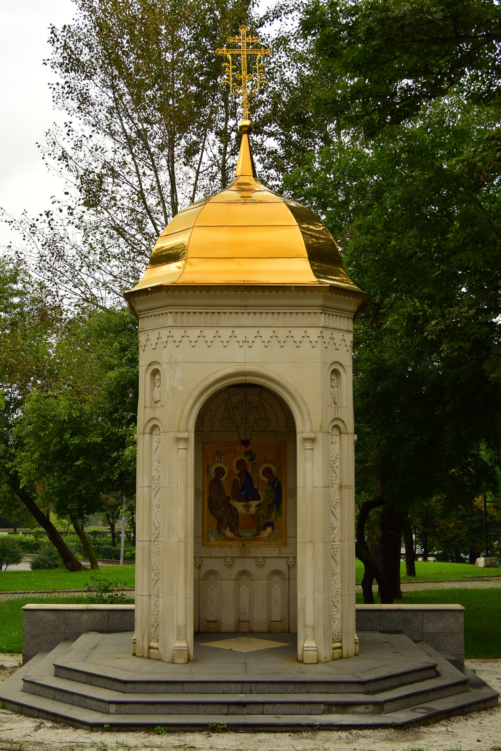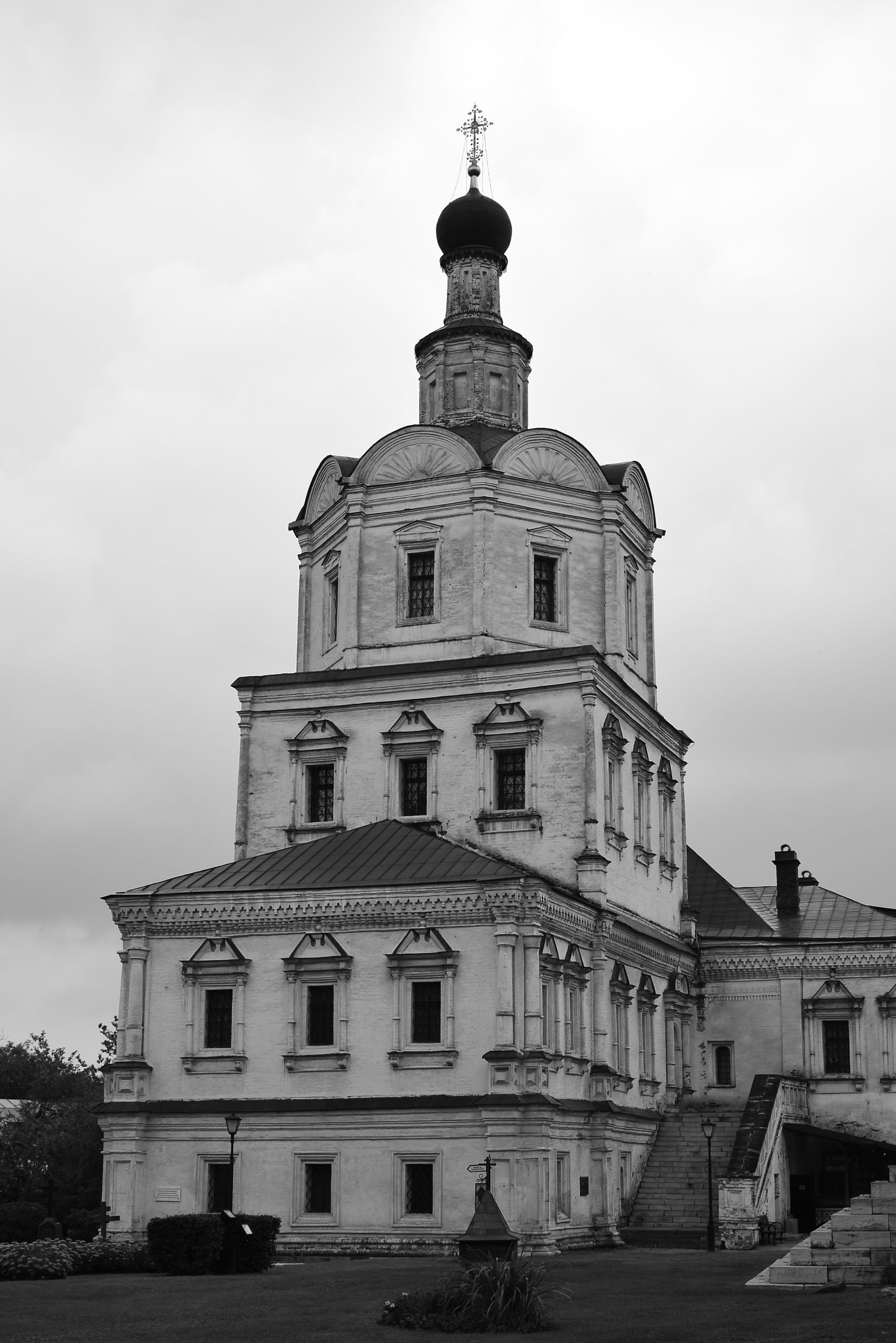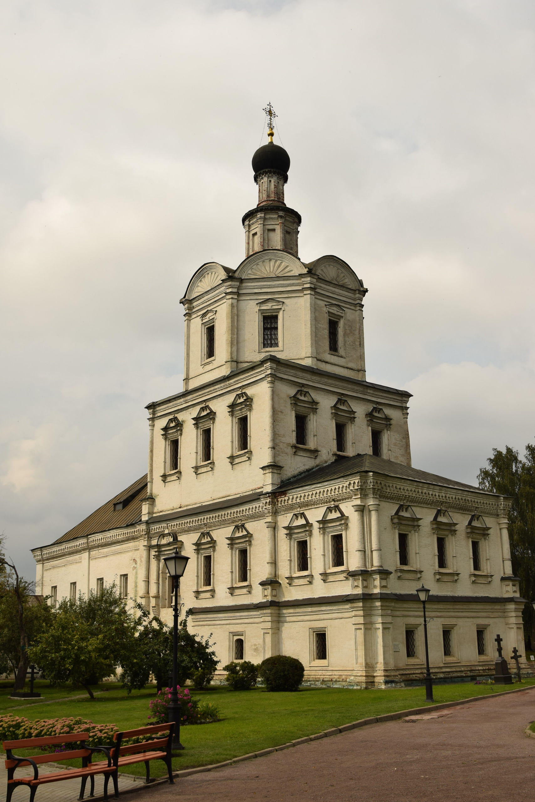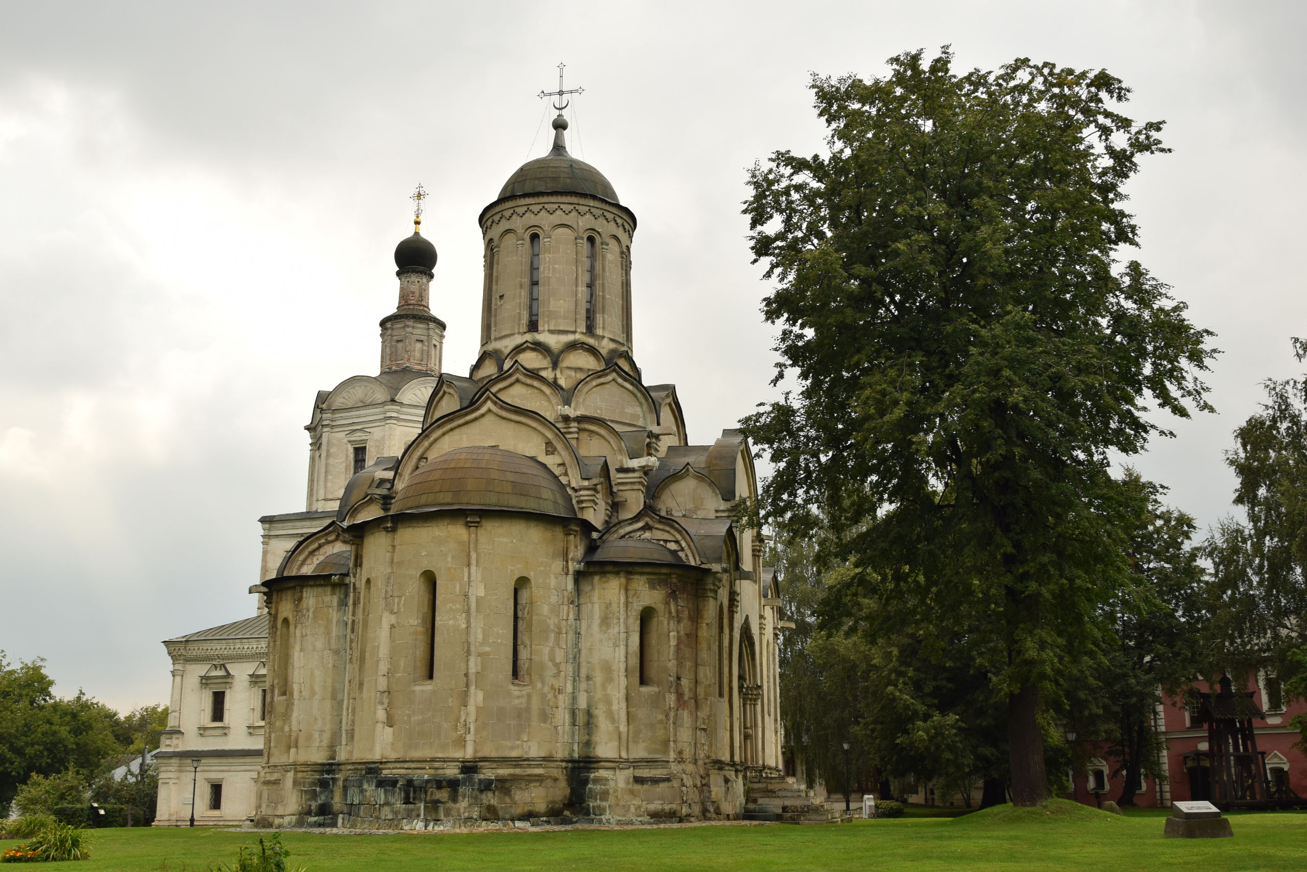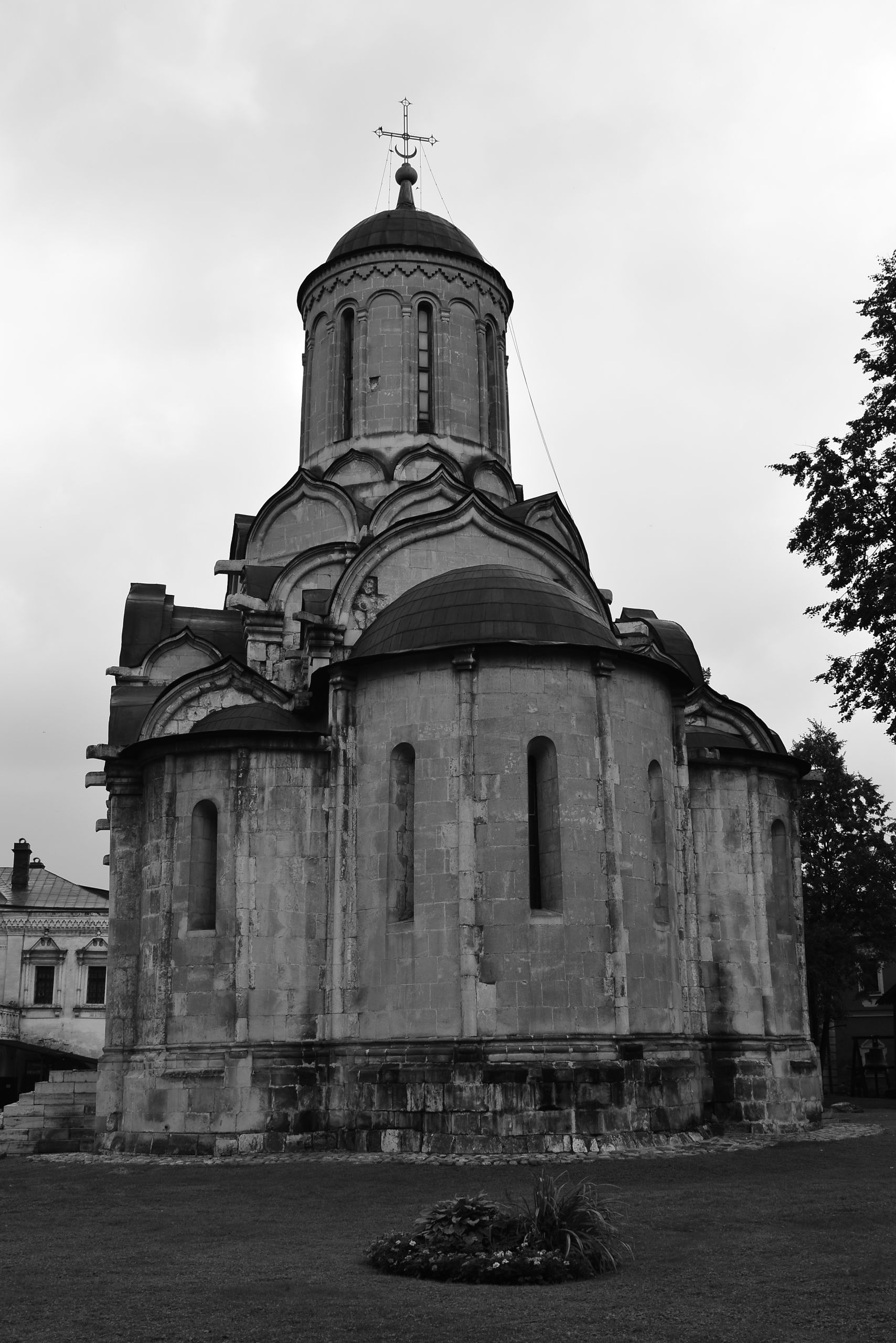 Переходим дорогу и оказываемся в сквере Спасо-Андорникова монастыря. Свою летопись Спасо-Андроников монастырь ведет с 1361 года. Его основателем является митрополит Московии Алексий. Когда в 1358 году Алексий отправился с визитом в Константинополь, то по пути он попал в сильнейший шторм в районе бухты Золотой Рог. Именно тогда митрополит и дал обет, что в случае спасения в Москве будет построен собор во имя того святого, чествование которого проходило в этот день. Непогода пришлась на день празднования Спаса Нерукотворного.