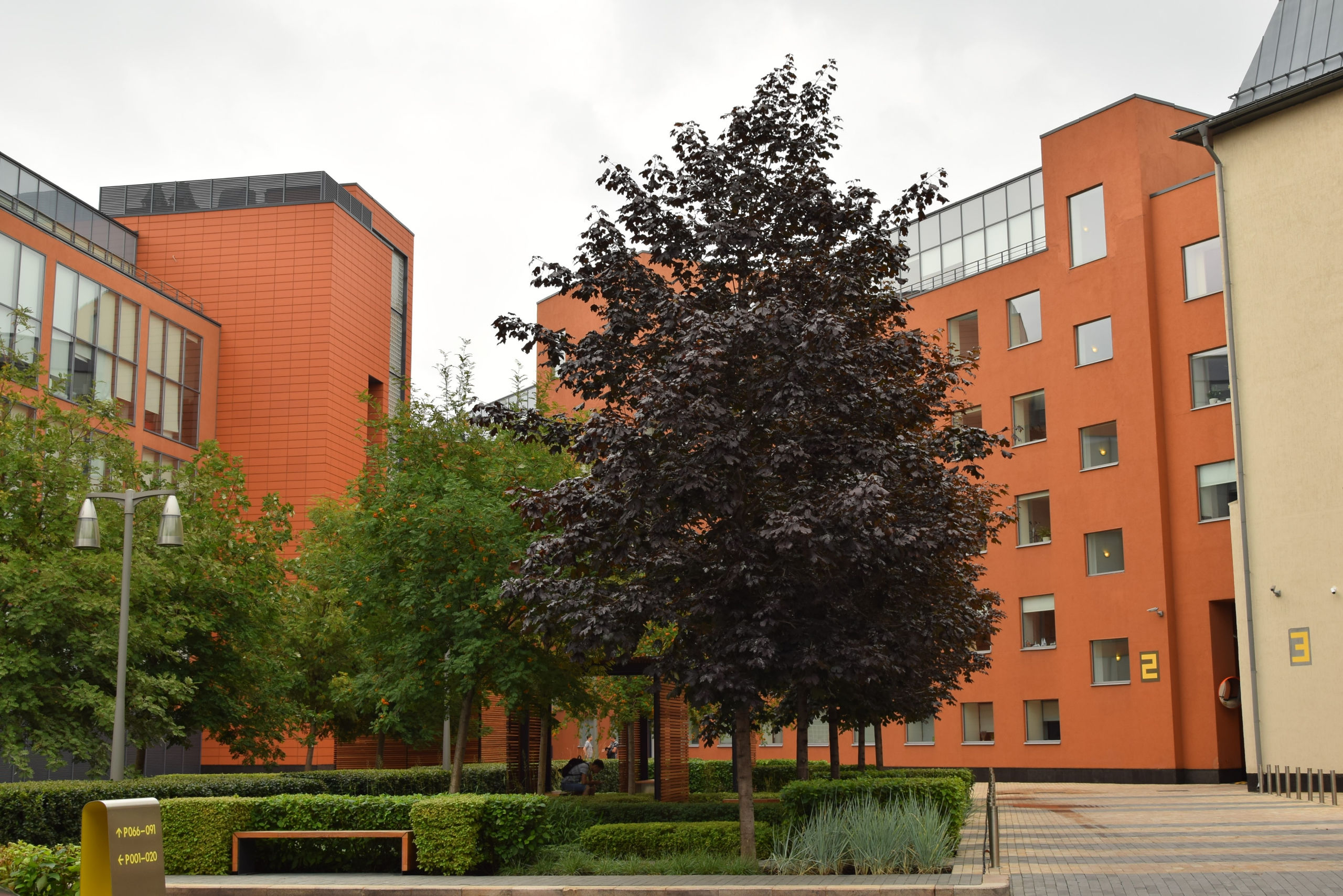 Территория великолепна, в выходные тут ни души, можно посидеть в сени молодых деревьев.