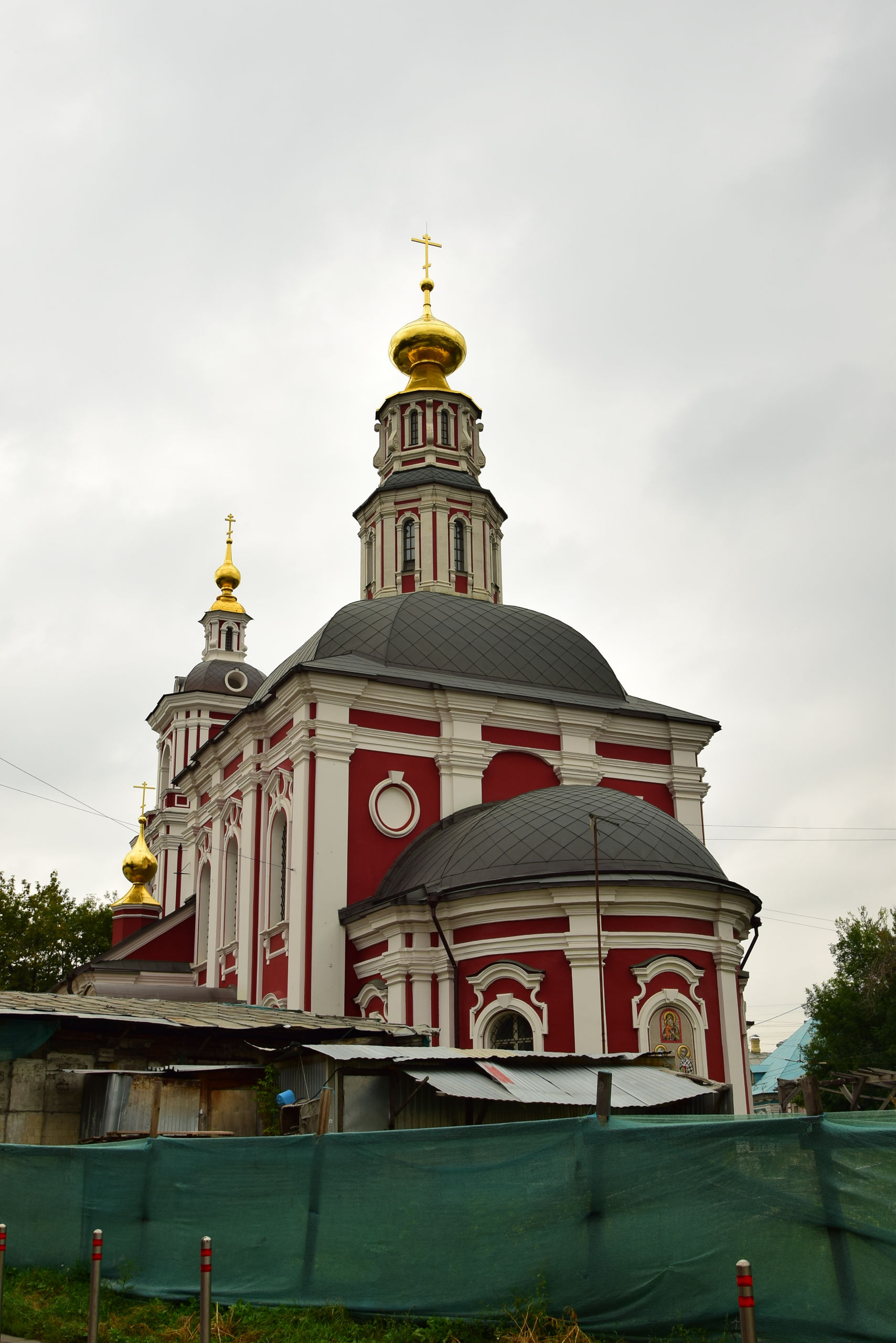 Доходим до конца Николоямской, справа Алексеевская церковь. Это одна из самых красивых и легендарных московских церквей, посвященных святителю Алексию. По преданию, она была построена на том месте, где когда-то стояла его палатка, откуда московский первосвятитель наблюдал за строительством Спасо-Андроникова монастыря, основанного по его обету в 1361 году за чудесное спасение во время шторма. Сейчас церковь успешно восстановлена, ведутся работы на территории.