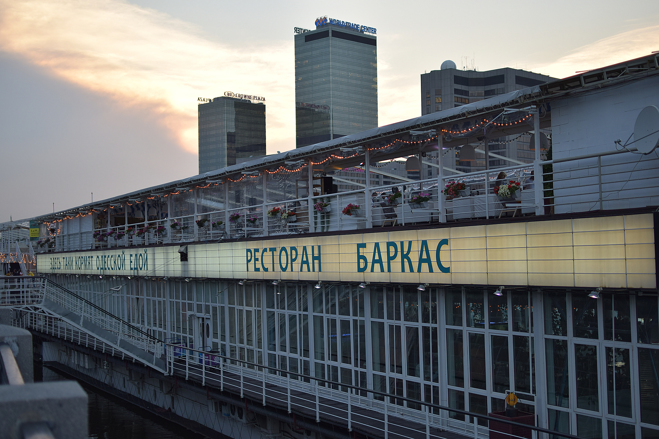 А вечером мы посетили чудесный ресторан «Баркас» пришвартованный у гостиницы «Украина».Тут сайт http://barkas.obiz.ru/